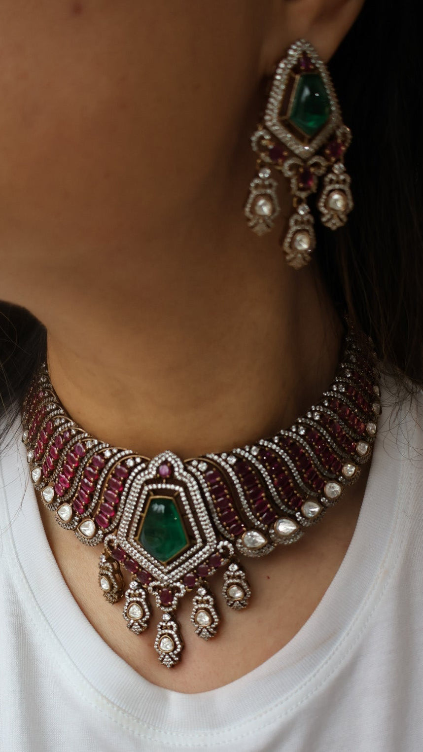Statement necklace with earrings available on pre-order basis. Estimated delivery 4-8 weeks.