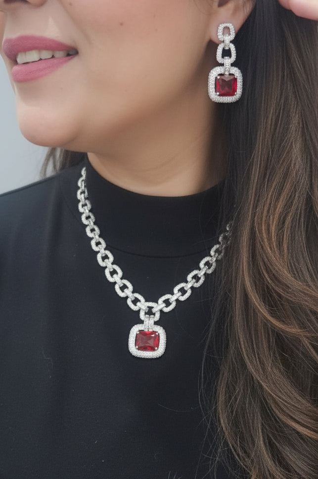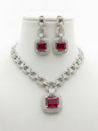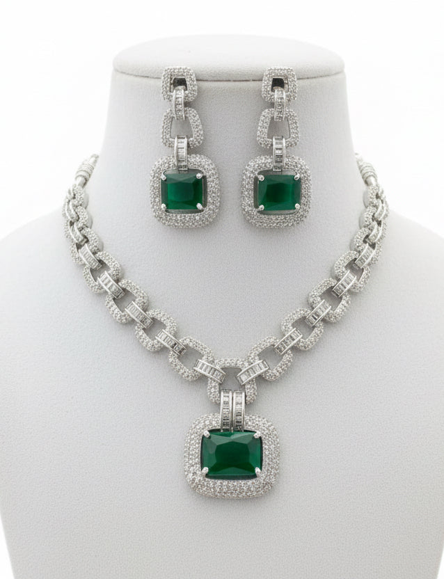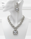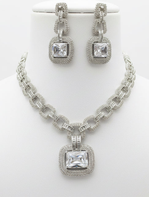Rhodium-plated set includes earrings & necklace