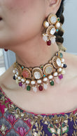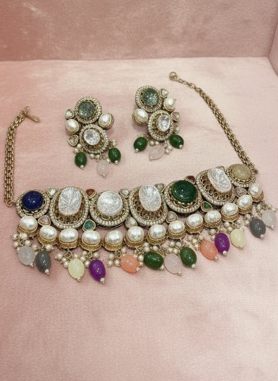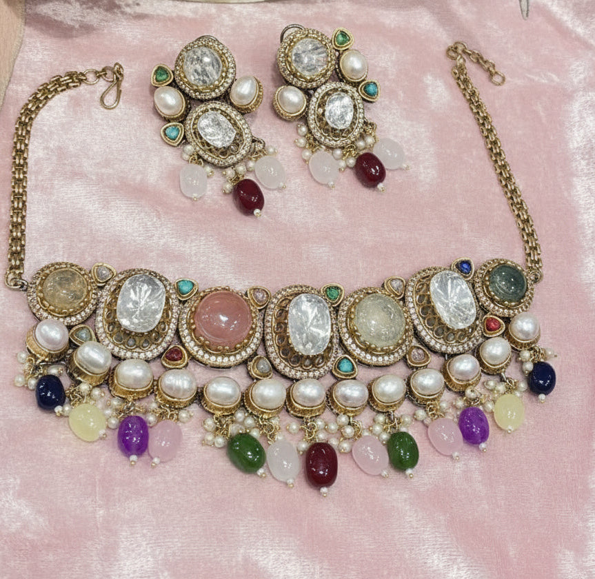 High quality choker & earrings. Necklace has a chain that has hooks so length can be adjusted.