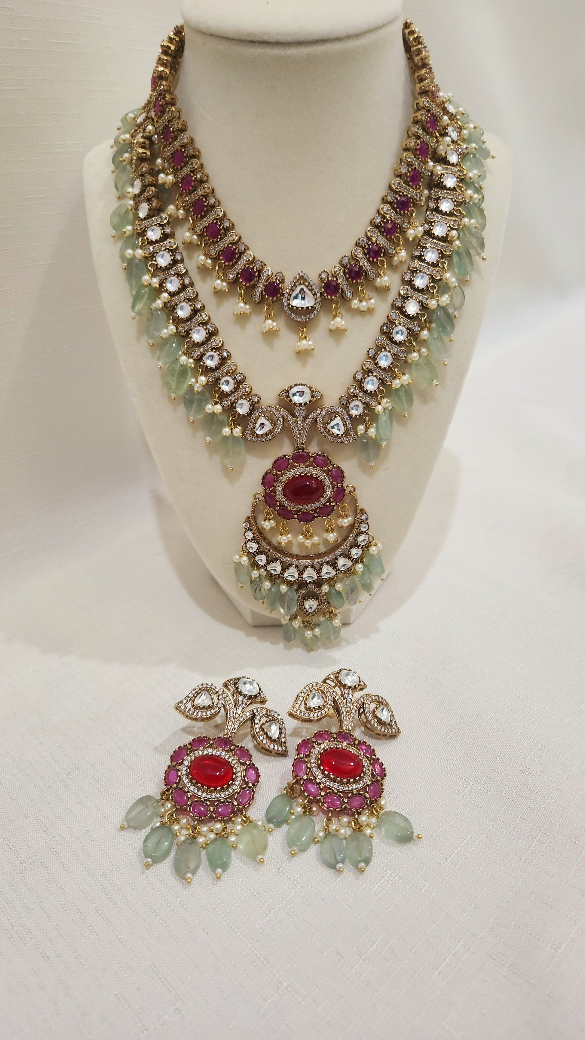Mala length 10" earrings 2.5" long and weigh 42g