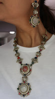 High quality mala & earrings. Mala has a chain that has hooks so length can be adjusted. Chain can be swapped for a dori if you prefer.